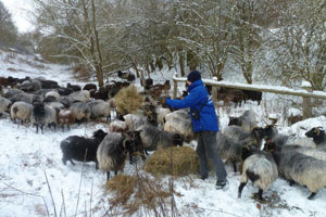 Im Winter wird die gesamte Herde zusammengeführt und meist im klimatisch günstigeren Edertal gehütet, wobei Schnucken ähnlich wie Wild auch unter dem Schnee liegendes Gras freikratzen. Zusätzliches Kraftfutter finden sie in Hutewäldern in Form von Eicheln und Bucheckern. Ausreichend Bio-Heu wird in den Koppeln zur freien Verfügung gestellt, damit auch jedes Schäfchen satt wird. Bei ganz extremen Wetterlagen muss die Herde im Offenstall bleiben, auch wenn Schnucken das nicht so mögen.